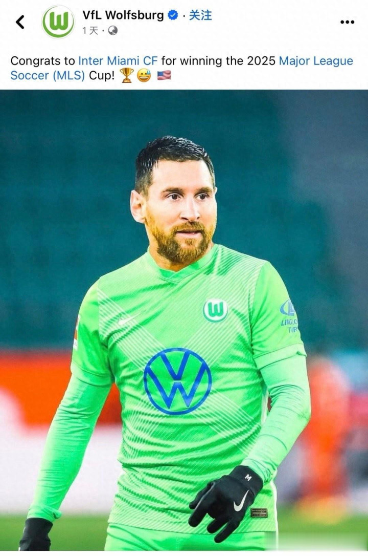 这一在美国大联盟创造的奇迹,其叙事内核——一支不被看好的球队逆势登顶——触动了远在德国的沃尔夫斯堡俱乐部。这支曾在十几年前虽然不是垫底或升班马,但前半程还只是前十倒数,但后来神奇逆转拜仁在德甲夺冠、上演“狼堡奇迹”的球队,特意将梅西头像P上自家球衣发文祝贺。这不仅是出于对相似逆袭故事的共情,更是一次精明的“蹭热度”,它揭示了当代足球世界的一种普遍心态:与梅西产生关联,即意味着与绝对的足球荣耀和流量中心产生关联。